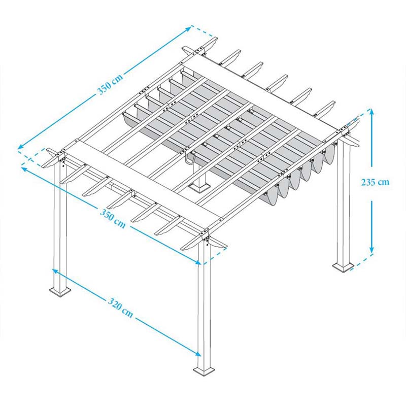 - Verstärktes Aluminium: Das pulverbeschichtete Gestell ist bis zu 20 % dicker als bei herkömmlichen Standard-Pergolen. Das sorgt für eine überragende Verwindungssteifigkeit und Standfestigkeit.