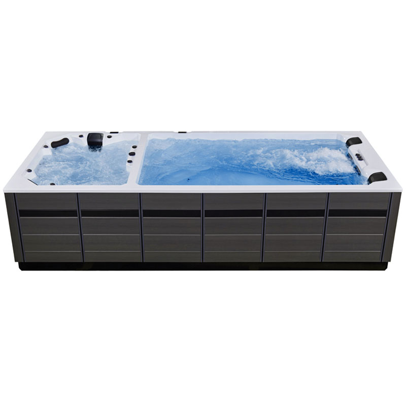 Der AWT Innovation590 Dual Swim Spa verbindet die Vorzüge eines luxuriösen Whirlpools mit den Fitnessmöglichkeiten eines Swim Spas. Mit großzügigen 590 x 235 x 140 cm bietet dieser Dual Zone SPA sowohl Platz für Entspannung als auch für aktives Training.