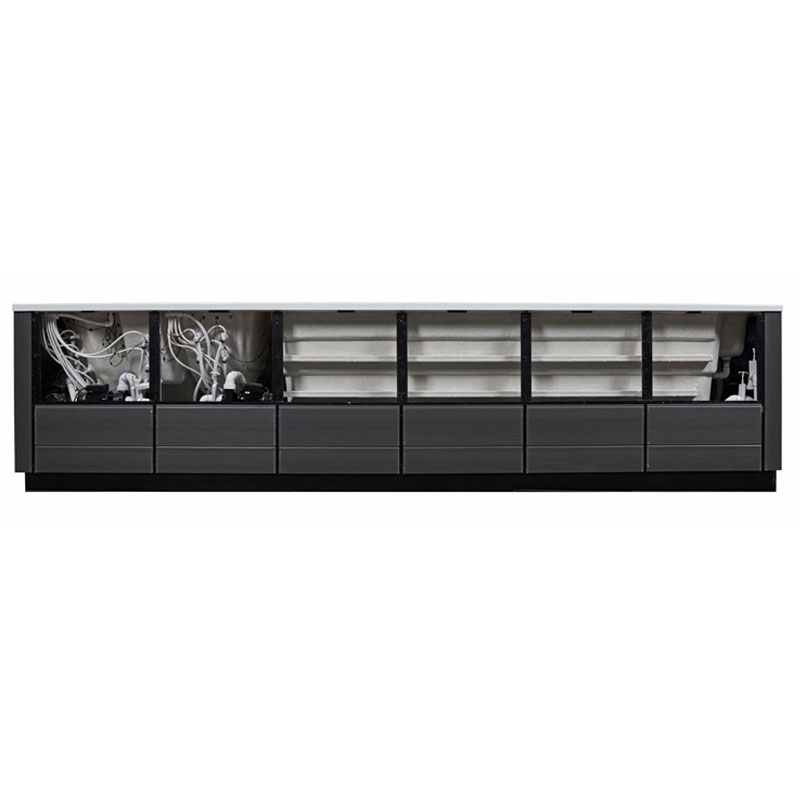 • Dezente LED-Beleuchtung (28 Lampen) unter den Kopfstürzen und im Filterbereich (auf SPA und SwimSPA verteilt)