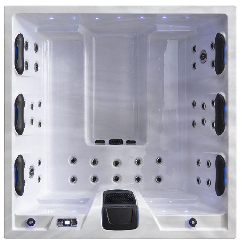 Der AWT IN-407 verfügt über 38 Hydrojets, von denen 14 mit einer Rotationsfunktion ausgestattet sind, um eine gezielte und erholsame Massage zu garantieren. Das Design der Sitze sorgt für optimalen Komfort, sodass Sie und Ihre Gäste die Entspannung in vollen Zügen genießen können.