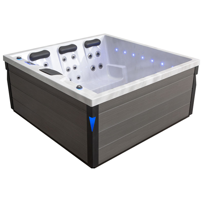 AWT Whirlpool IN-407 ECO Sterling Silver 200 x 200 x 90 cm Farbe grau inkl. Thermoabdeckung, Treppe und mit 38 Hydrojets ausgestattet. Ideal für bis zu 5 Personen geeignet