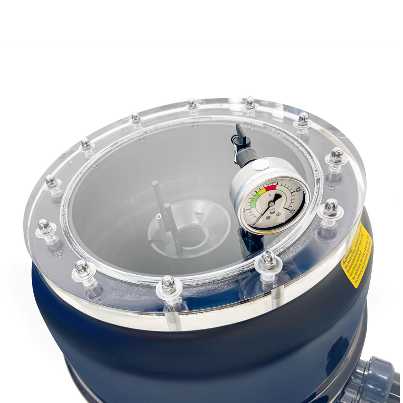 - Ästhetisches Design: Das moderne und zeitlose Design des Filterkessels fügt sich harmonisch in jede Poolumgebung ein und unterstreicht den professionellen Anspruch Ihrer Anlage.