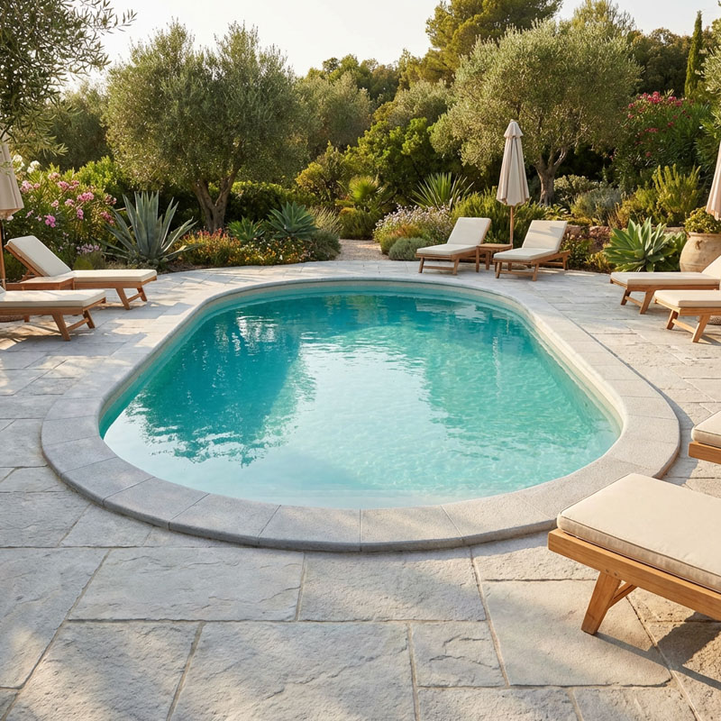 Die gewölbten Steine mit der abgerundeten Innenseite fügen sich harmonisch in Ihr Pooldesign ein und bieten gleichzeitig eine komfortable Nutzung. Ob beim Entspannen am Beckenrand oder beim Ein- und Ausstieg ins Wasser – die Standard Steine kombinieren Ästhetik mit praktischen Vorteilen.