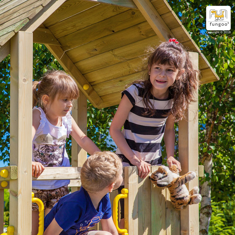 Der FUNGOO CAROL 1 Spielturm ist die perfekte Wahl für Garten, Freizeitgrundstücke und öffentliche Spielplätze, wo Kinder aktiv spielen und klettern können. Gestalten Sie den Garten Ihrer Kinder zu einem Ort voller Abenteuer und Kreativität!
