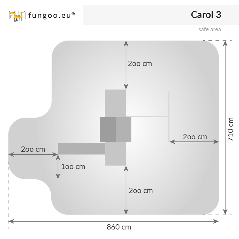 Der FUNGOO CAROL 3 Spielturm ist perfekt für Gärten, Freizeitgrundstücke und öffentliche Spielbereiche, wo Kinder aktiv spielen und ihre Abenteuerlust ausleben können. Verwandeln Sie Ihren Garten in ein echtes Spielparadies!