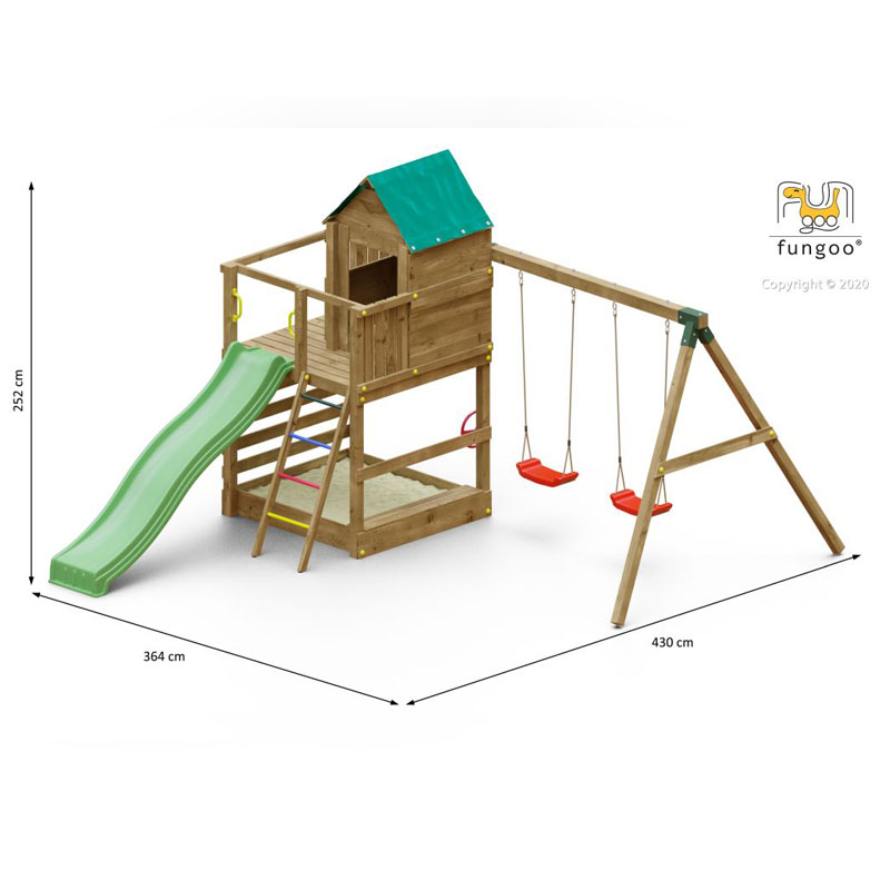 Produktinformationen "Fungoo Spielturm Jarcas4 | Schaukel | Rutsche | Kletterwand"