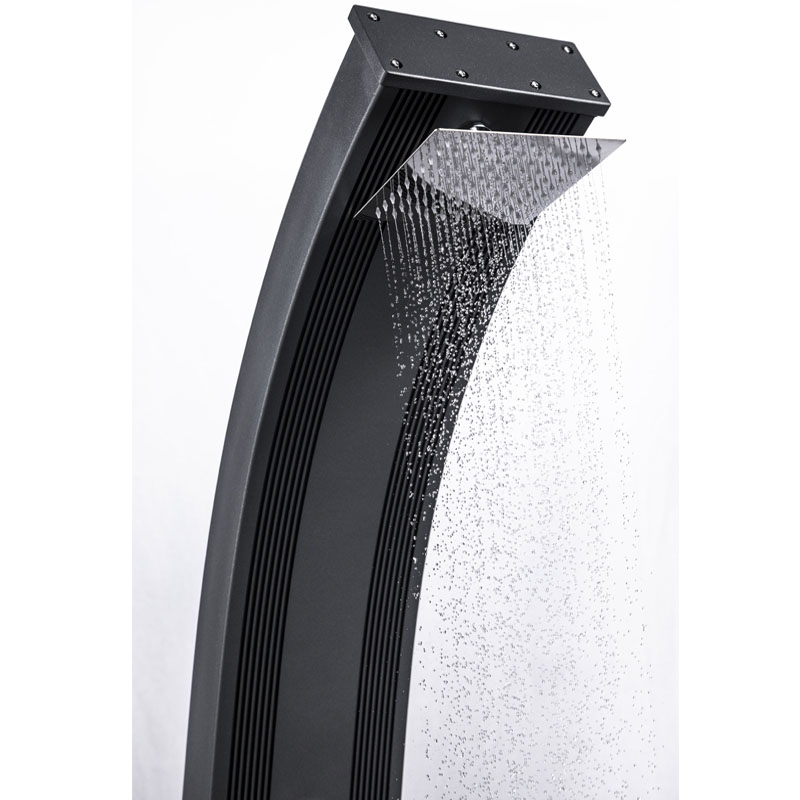 Die neue Innovation aus dem Hause Formidra kombiniert glänzendes Aluminium in Edelstahloptik mit einer harmonisch geschwungenden Form und überzeugt mit einem ultraflachen Duschkopf durch elegantes und hochwertiges Design. Durch den großen rechteckigen Duschkopf mit Regeneffekt profitieren Sie von einem besonderen Duscherlebnis und durch die hochwertigen Armatur Elemente ist die Dusche zeitlos modern und fügt sich optisch ideal in Ihren Garten ein.