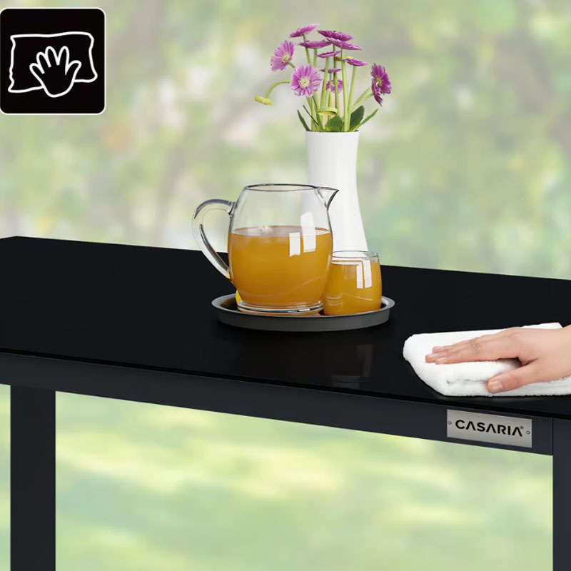- Stabiles Sicherheitsglas: Die Tischplatte besteht aus zwei Segmenten aus 5 mm dickem Sicherheitsglas. Dieses ist nicht nur hochfest und schlagbeständig, sondern auch hitzeresistent und extrem pflegeleicht.