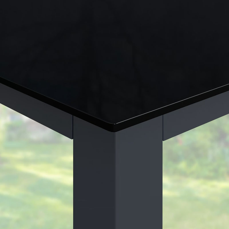 Der Gartentisch Bern setzt auf ein klares, modernes Design. Die Kombination aus dem anthrazitfarbenen Aluminiumrahmen und der tiefschwarzen Glasoberfläche verleiht Ihrem Außenbereich eine edle Note. Mit seinen Maßen von 150 x 90 cm bietet er bequem Platz für bis zu sechs Personen – ideal für entspannte Abende mit der Familie oder kleine Grillfeiern.