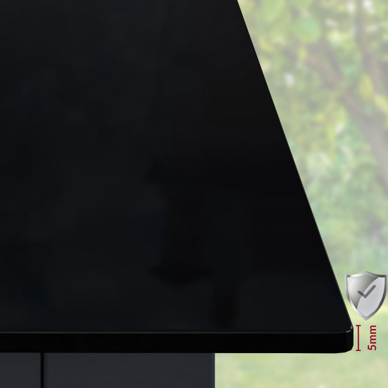 - Tischplatte 5 mm hochfestes Sicherheitsglas (2-teilig)