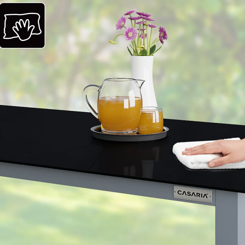 Die Reinigung des Tisches ist denkbar einfach: Die Glasplatten und der Aluminiumrahmen lassen sich mühelos mit einem feuchten Tuch und mildem Reiniger säubern. Da Aluminium ein Leichtmetall ist, lässt sich der Tisch trotz seiner Größe bei Bedarf einfach versetzen.