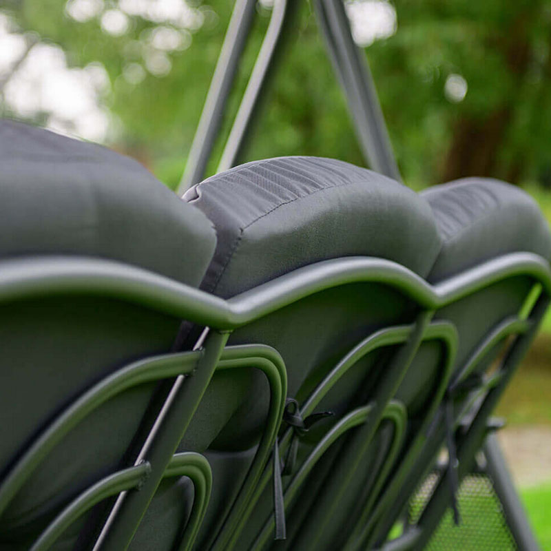 Angenehme Stunden sind garantiert dank der weichen Sitz- und Rückenkissen mit einer Dicke von 8 cm, die abnehmbar sind. Die integrierten Getränkehalter und die rutschfeste Gummierung an den Schaukelfüßen sorgen für zusätzlichen Komfort und Sicherheit. Mit einer maximalen Belastbarkeit von 360 kg bietet die Hollywoodschaukel DESCANSO nicht nur Platz, sondern auch Stabilität für die ganze Familie oder Freunde.