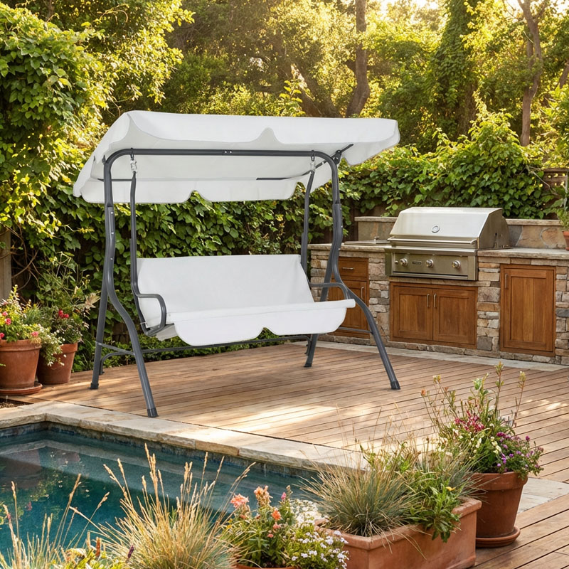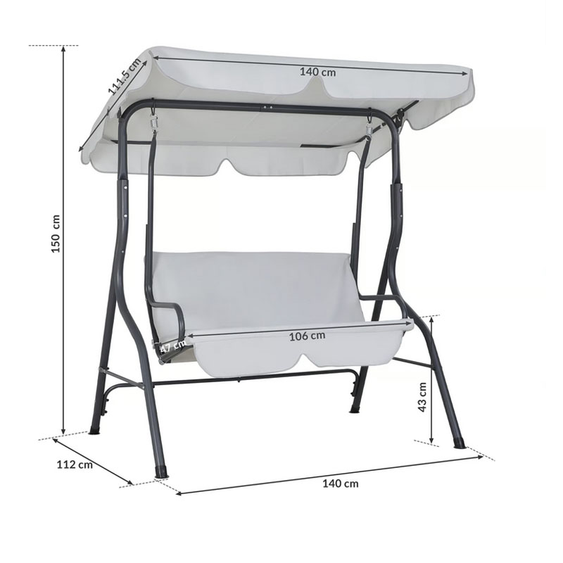 Der Bezugsstoff der Hollywoodschaukel besteht aus hochwertigem 600 x 300 D Oxford Stoff, der wasserabweisend ist und sich hervorragend für den Außenbereich eignet. Das Gestell aus stabilerweise pulverbeschichtetem Stahl schützt die Schaukel vor Kratzern und Korrosion, wodurch die Langlebigkeit des Produkts gewährleistet ist.