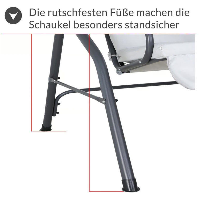 Die h-Form der Standbeine sorgt für zusätzliche Stabilität und Standfestigkeit. Das sandgestrahlte Finish verleiht der Schaukel eine elegante Matt-Optik, die ein optisches Highlight in Ihrem Garten oder auf Ihrer Terrasse darstellt.