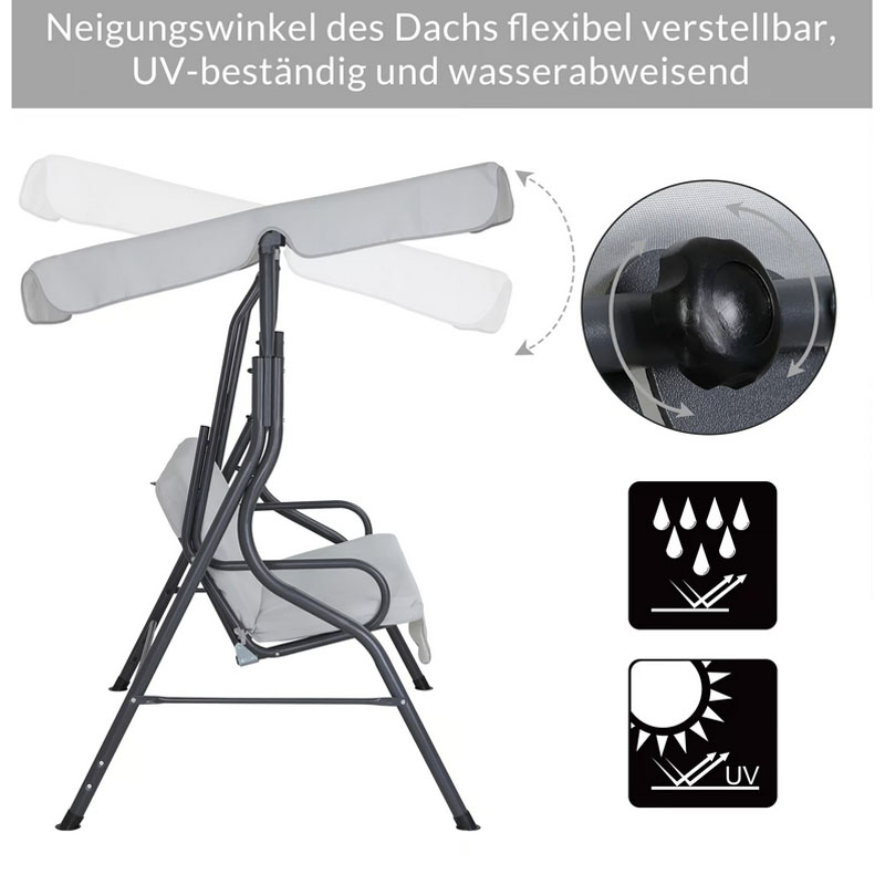 Genießen Sie entspannte Stunden in Ihrer Hollywoodschaukel Hellgrau von CASARIA®. Mit ihrem modernen Design und den hochwertigen Materialien wird sie zum perfekten Begleiter für entspannte Stunden im Freien.