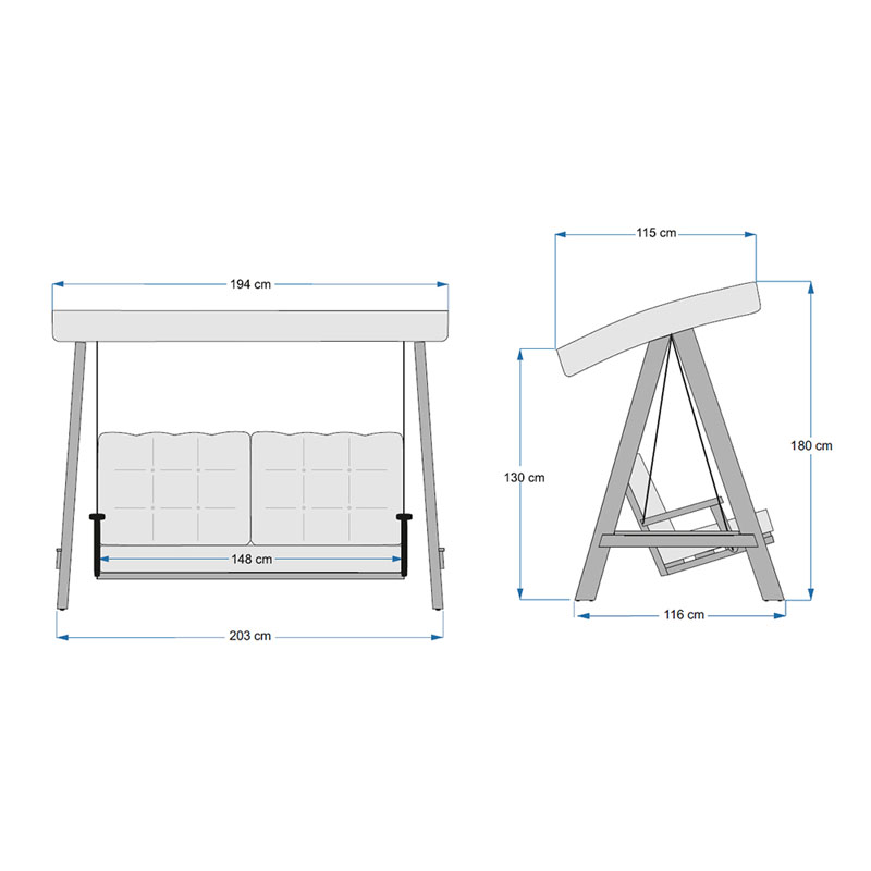 Produktinformationen "Hollywoodschaukel Pera 2000 Anthrazit 203x116x180 cm"