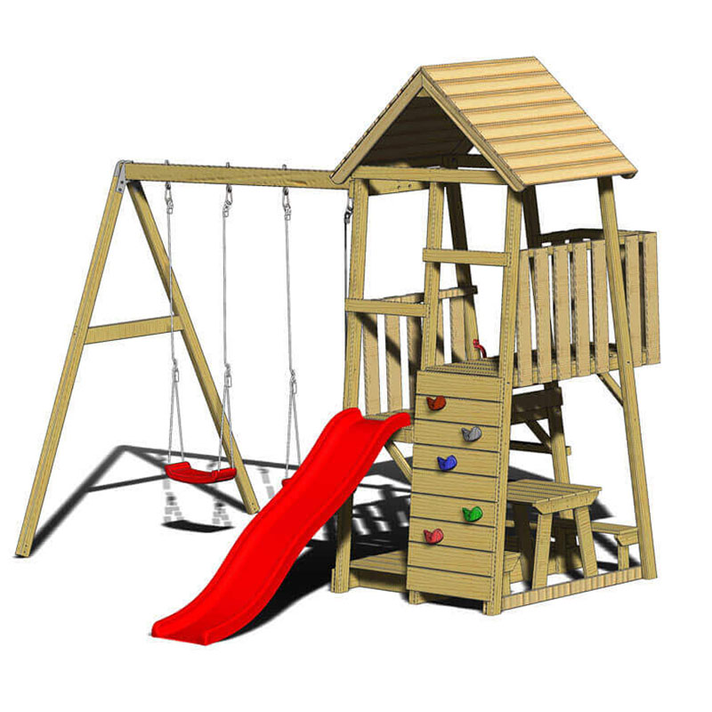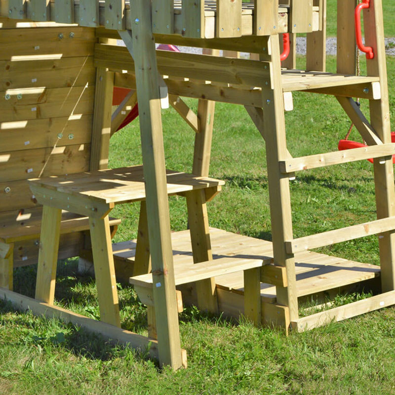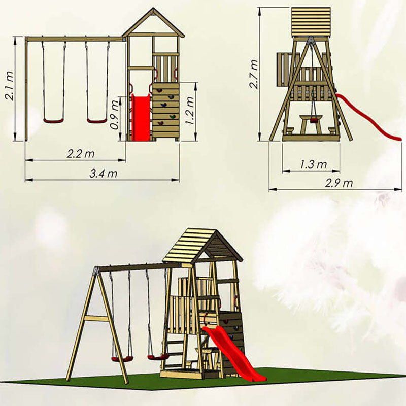 - Vielseitiger Spielspaß: Rutsche, Kletterwand, 2 Schaukeln und Picknicktisch für unzählige Spielmöglichkeiten.