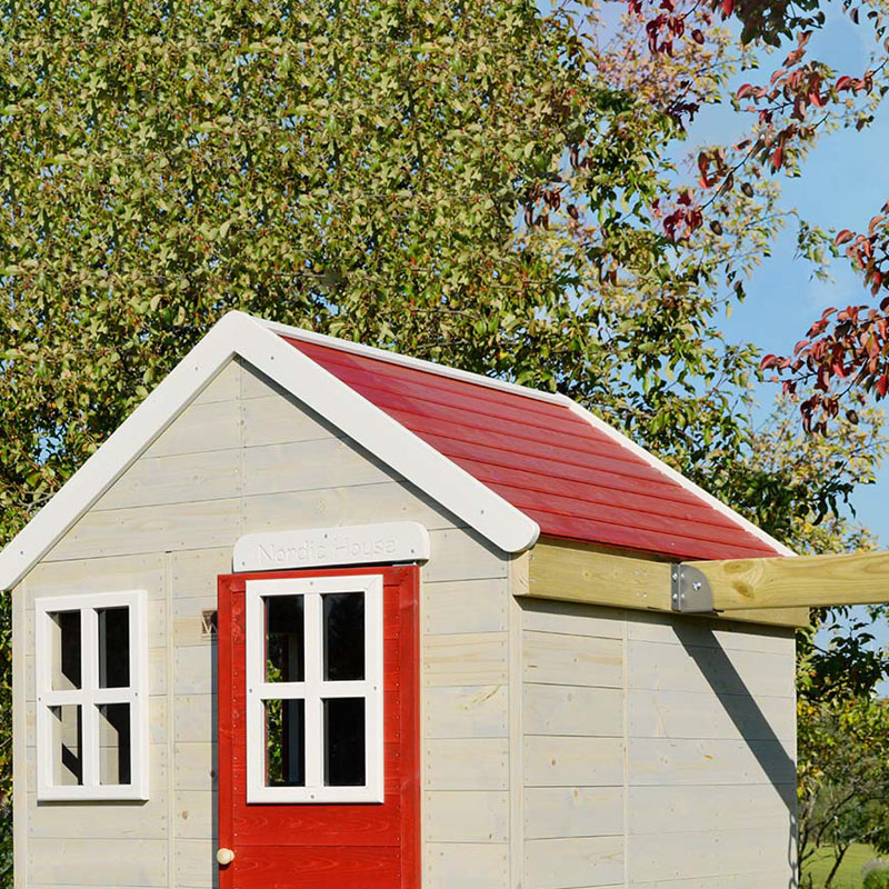 Das Stelzenhaus Zebra ist mehr als nur ein Spielgerät – es ist ein Rückzugsort, an dem Kinder ihre Fantasie entfalten, Rollenspiele spielen und unvergessliche Momente erleben können. Die Veranda mit roter Eingangstür und die zwei kleinen Fenster mit Plexiglasscheiben verleihen dem Stelzenhaus einen besonderen Charme und laden zum Verweilen ein.