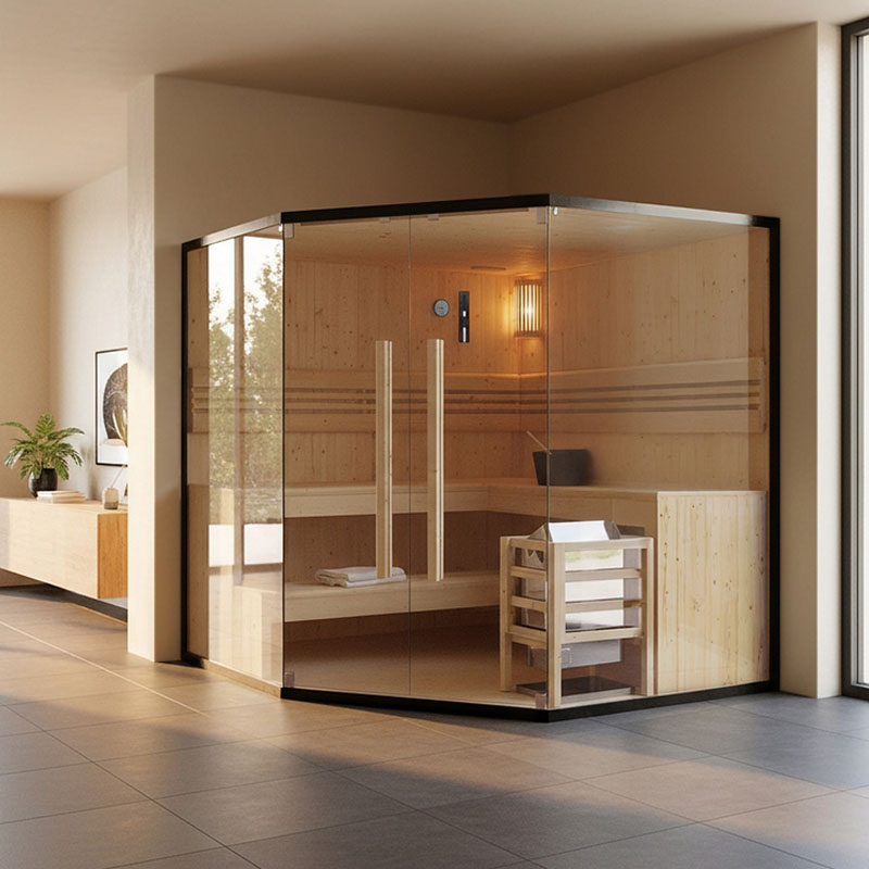 - Hohe Wärmedämmung: Die Sauna verfügt über eine hohe Wärmedämmung, die für eine effiziente Energienutzung sorgt.