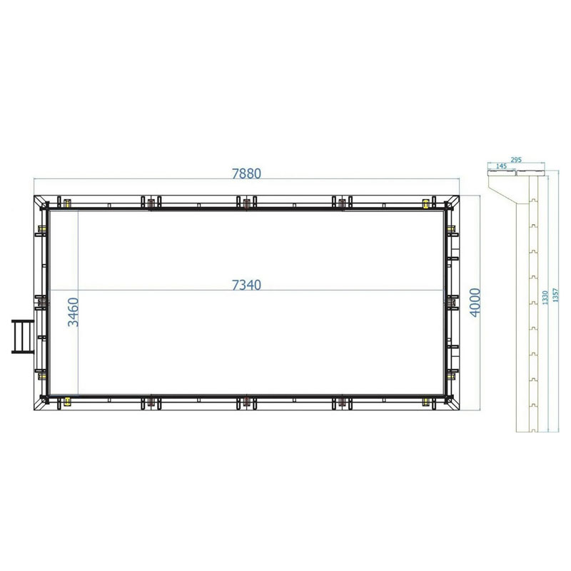 • Außenmaße: ca. 790 x 400 cm