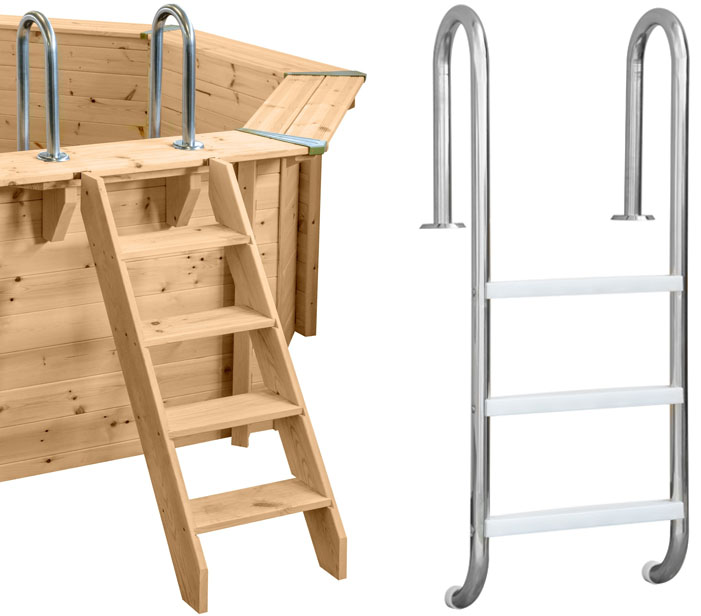 - Leiter: Ermöglicht einen bequemen Ein- und Ausstieg aus dem Pool. Sie erhalten sowohl eine Leiter aus Edelstahl,