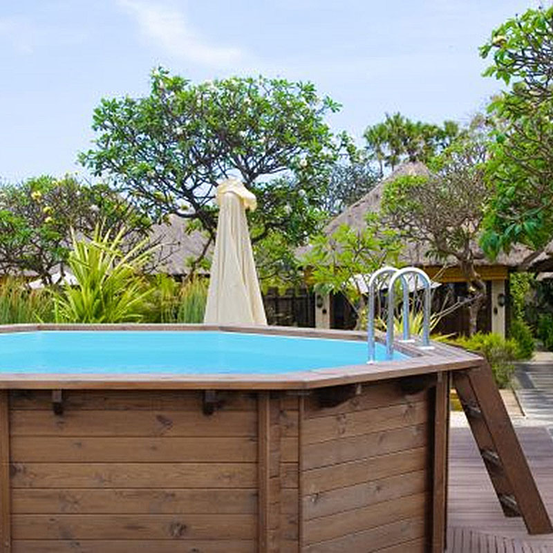 Durch die hochwertige Verarbeitung der Holzbohlen bietet dieser Holzpoolset Bali einen besonders hochwertigen Anblick und passt