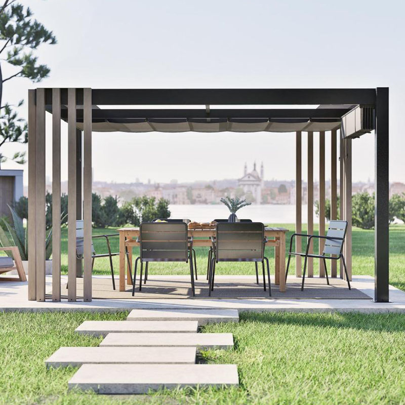 Die Sojag Lito 1012 bricht mit dem klassischen Pergoladesign und setzt neue Maßstäbe in Sachen Ästhetik und Funktionalität. Mit einem spannenden Mix aus metallischem Schwarz, modernem Grau und warmer Holzoptik wird diese 3x4 m große Gartenlaube zum architektonischen Mittelpunkt Ihres Außenbereichs. Sie ist die perfekte Wahl für Design-Enthusiasten, die keine Kompromisse bei der Stabilität eingehen wollen.