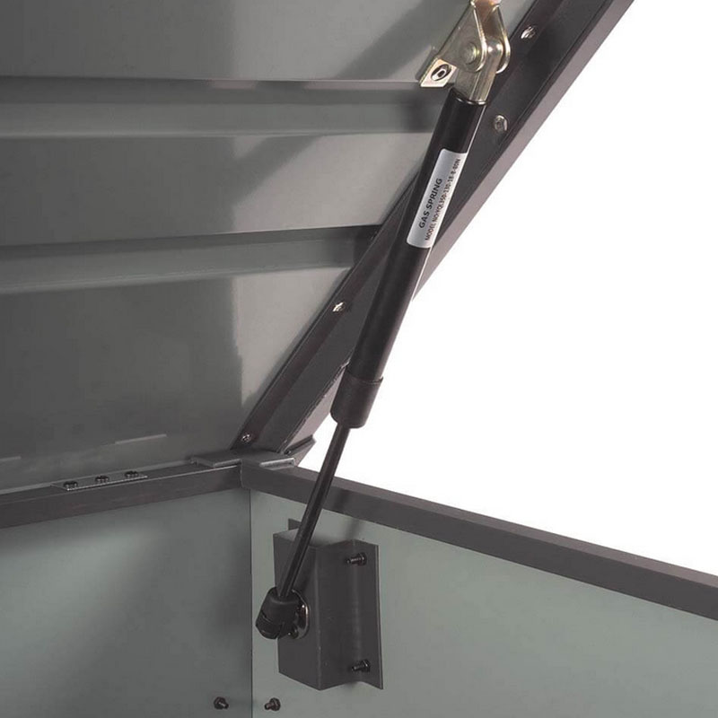 Der Deckel der Aufbewahrungsbox ist mit zwei Gasdruckzylindern ausgestattet, die ein müheloses Öffnen ermöglichen. Auch für zusätzliche Sicherheit ist gesorgt: Die Box lässt sich abschließen und wird mit einem Schloss und zwei Schlüsseln geliefert. So können Sie Ihre Utensilien sicher verwahren.