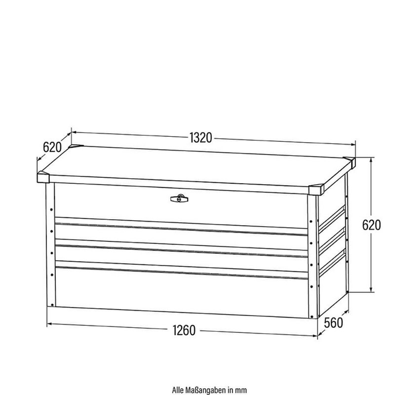 - Deckel Maße (L x B): Ca. 132 x 62 cm