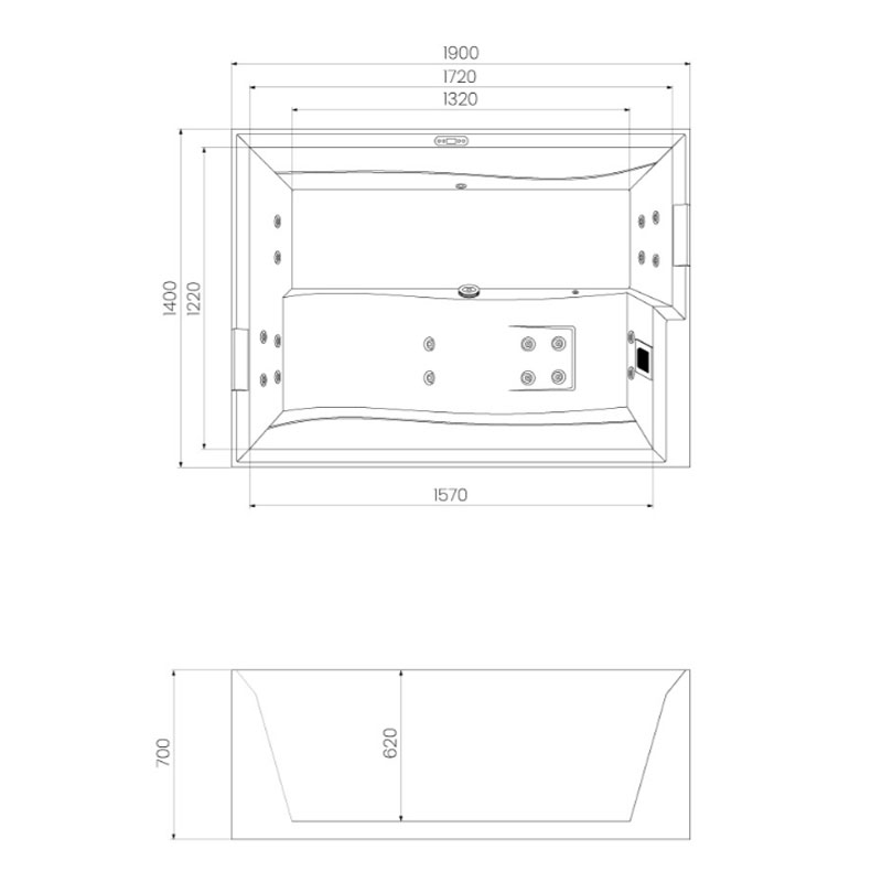 - Maße Whirlpool (L x B x H): 190 x 140 x 70 cm