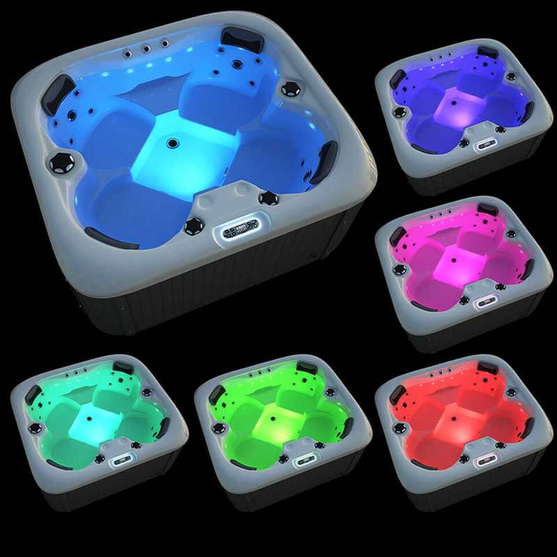 Der Whirlpool ist mit 15 LEDs an der Wasserkante und einer lichtstarken LED im Fußbereich ausgestattet, die ein bezauberndes Lichtspiel erzeugen. Dies sorgt für eine entspannende Atmosphäre während Ihrer Wellnessmomente.