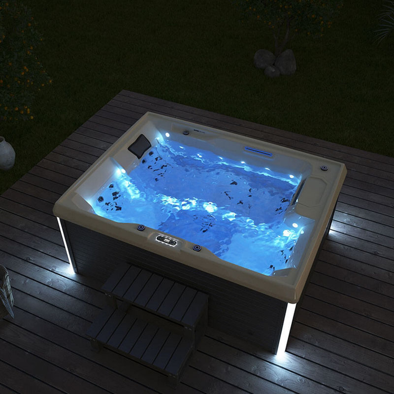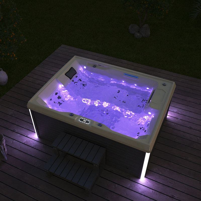 Der Whirlpool verzaubert mit 31 LEDs, darunter vier äußere LED-Lichtstreifen, die sanft die Umgebung erhellen. Die LED-Lichter im Boden und an den Innenwänden schaffen eine gemütliche Atmosphäre, ideal für entspannte Abende unter dem Sternenhimmel.