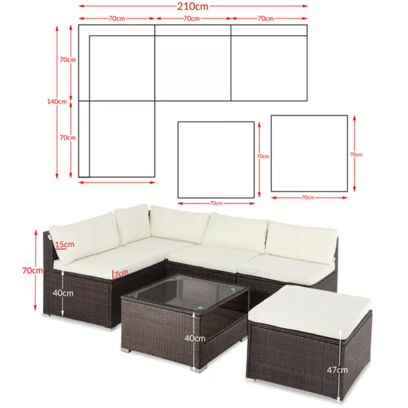 - Maße Sitzgarnitur (LxBxH) 210 x 210 x 70 cm
