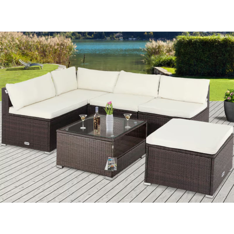 Holen Sie sich das Wohnzimmer-Gefühl unter den freien Himmel. Die CASARIA® Polyrattan Ecklounge in harmonischem Braun-Creme ist die perfekte Symbiose aus elegantem Design und unvergleichlichem Sitzkomfort. Ob für gesellige Abende mit Freunden oder entspannte Lesestunden – dieses modulare Set bietet Ihnen die Freiheit, Ihre Wohlfühloase exakt nach Ihren räumlichen Gegebenheiten zu gestalten.