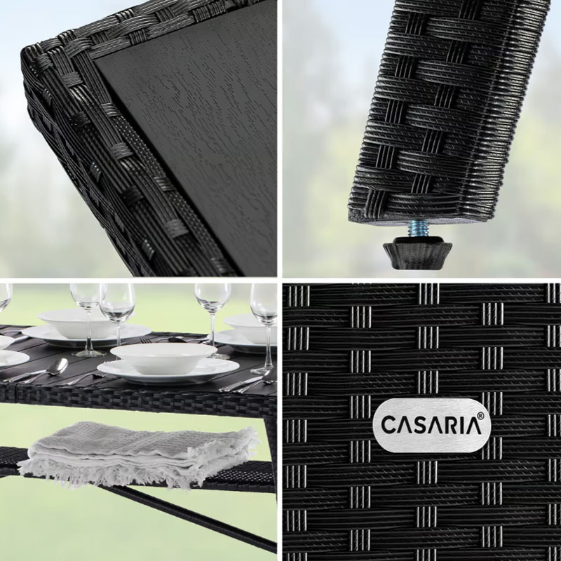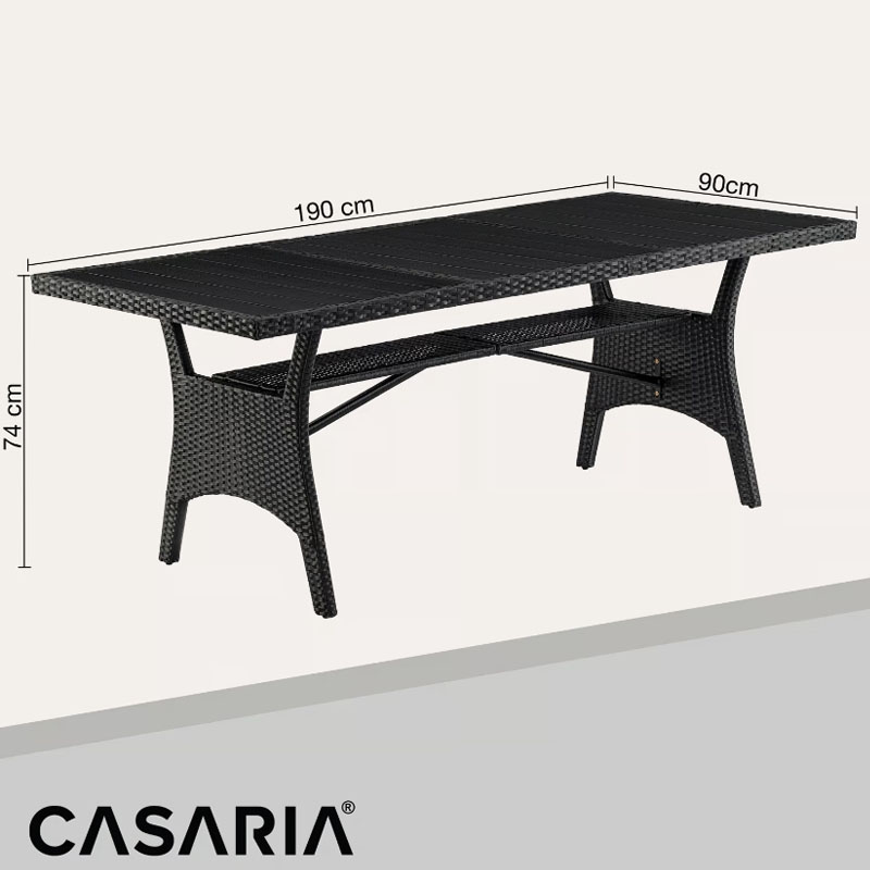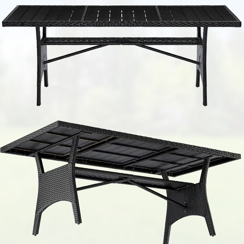 Polyrattan Gartentisch Takeo Schwarz 190 x 90 x 75cm WPC
