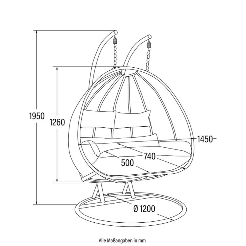 Der großzügige Korb bietet Platz für bis zu zwei Personen und lädt zum gemeinsamen Entspannen ein. Machen Sie es sich mit Ihrem Partner gemütlich und genießen Sie die Zweisamkeit.