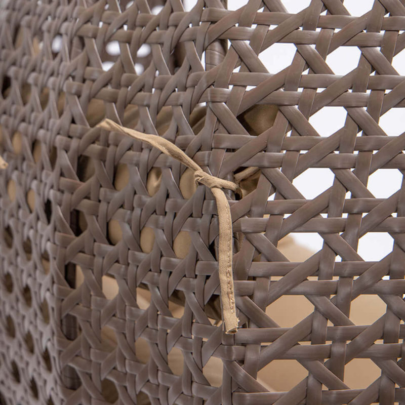 Inklusive sind bequeme Sitz- und Rückenkissen, die für zusätzlichen Komfort sorgen. Die Kissenbezüge sind aus wasserfestem Polyester gefertigt und waschbar.