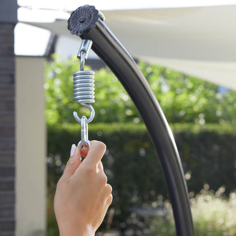 Der Hängesessel Cama ist mit einer gefederten Federung ausgestattet, die sanfte Vibrationen erzeugt und das Sitzen zu einem erholsamen Erlebnis macht. Der feste, stabil gehaltene Korb sowie das robuste, pulverbeschichtete Metallgestell sorgen dafür, dass Sie sicher und bequem sitzen können.