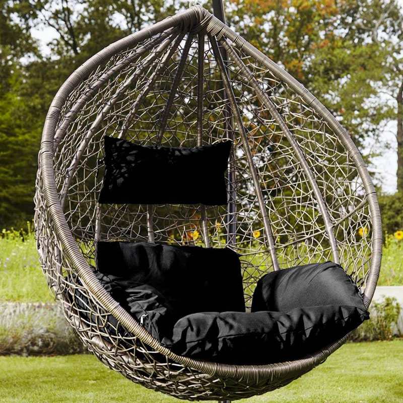 - Inklusive Kissen: Der Hängesessel kommt mit einem bequemen Sitz-, Seiten- und Rückenkissen, die mit abnehmbaren und waschbaren Bezügen ausgestattet sind.