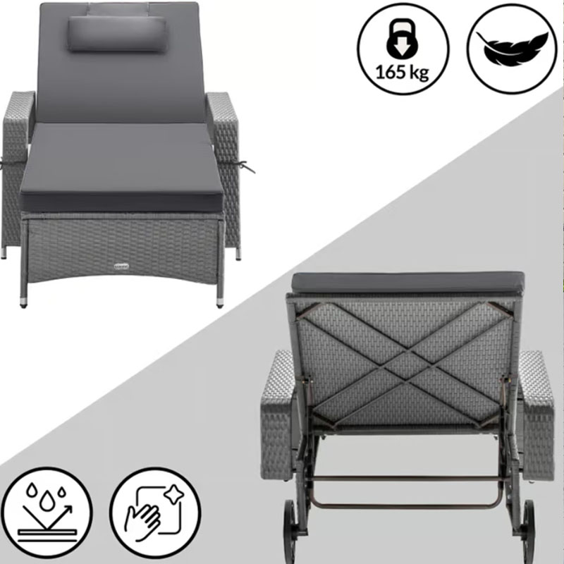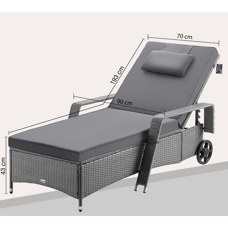 Polyrattan Poolliege fahrbar Grau/Anthrazit 193 x 90 x 43 cm - Gestalten Sie Ihren Garten zur Wohlfühloase mit der fahrbaren Sonnenliege