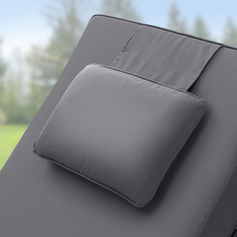Dank der leichtgängigen Räder können Sie die Gartenliege mühelos transportieren – so findet sie immer den sonnigsten Platz. Die 5-fach verstellbare Kopflehne ermöglicht es Ihnen, die Liegeposition ganz nach Ihren Wünschen anzupassen, perfekt zum Lesen oder Entspannen. Das integrierte Kopfkissen sorgt zudem für eine angenehme Nackenhaltung.