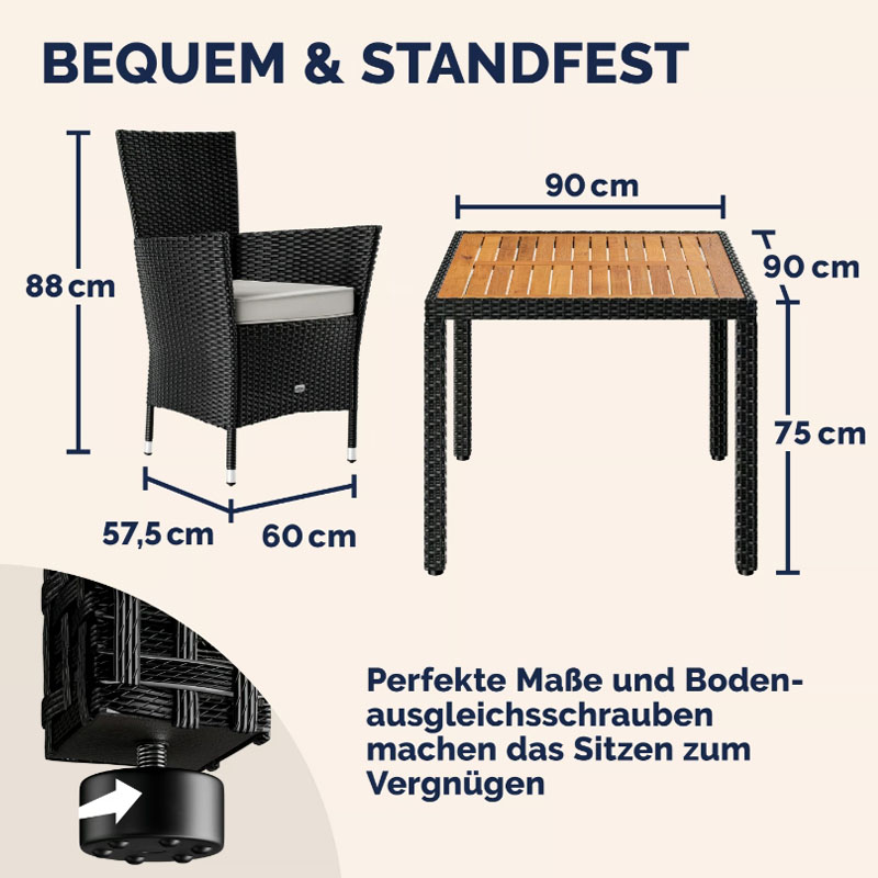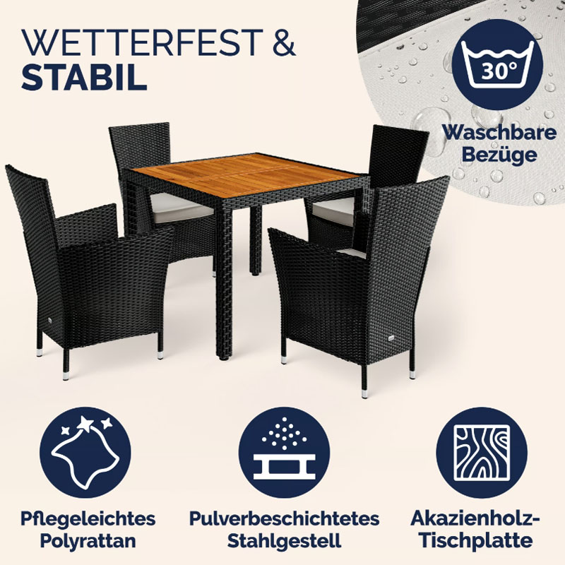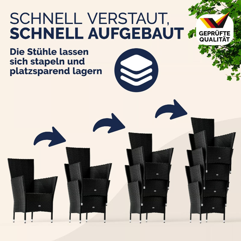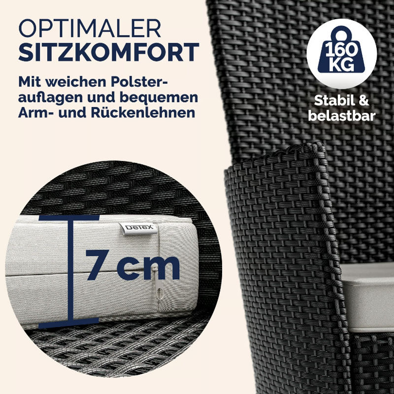 - Wetterfest: Das UV-beständige Polyrattan behält dauerhaft seine tiefe schwarze Farbe.