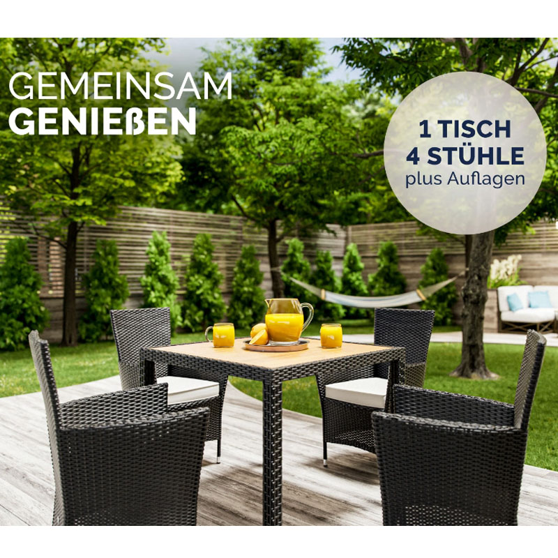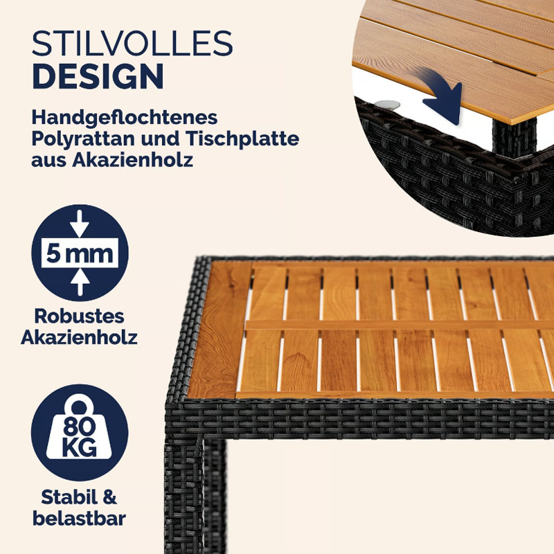 - 1 x Gartentisch (90x90 cm) mit Akazienholzplatte