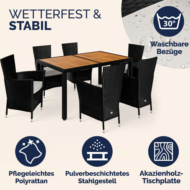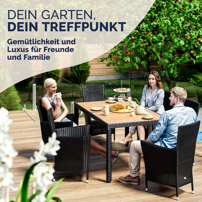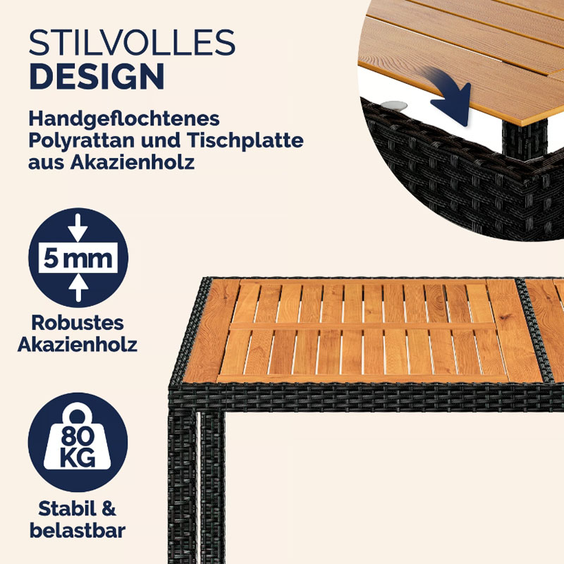 - Edler Materialmix: Akazienholz trifft auf modernes Polyrattan.