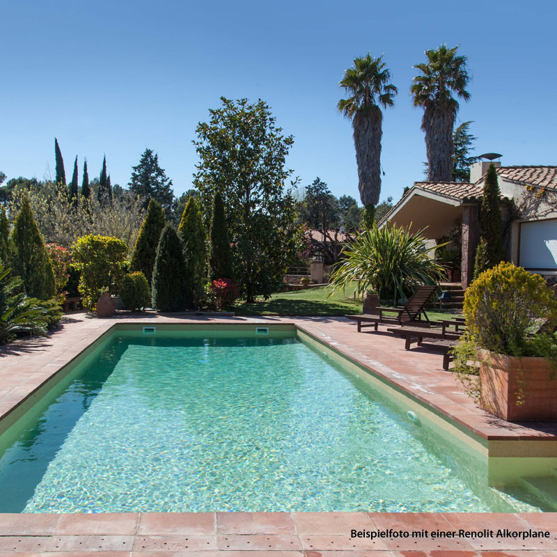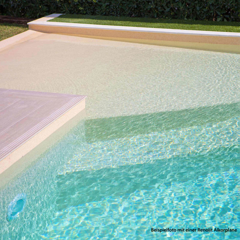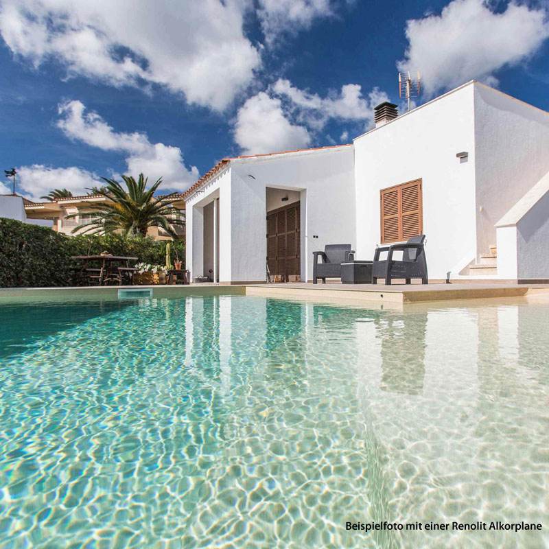 Die Alkorplan 3000 Touch haben keine glatte Oberfläche, wie man diese sonst kennt. Die Oberfläche ist grob strukturiert und verleiht Ihrem Schwimmbecken eine außergewöhnliche Optik. Diese Folienauskleidungen sind optimal und sicher einzigartig zur Gestaltung eines Naturpools, eines Pools mit Strandflair oder eines Pools in Betondesign.