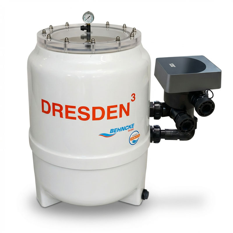 - Behncke Dresden Filterbehälter: Hochwertiger GFK-Behälter mit großer Serviceöffnung, integriertem Düsenkreuz und praktischer Ausstattung. Wählen Sie zwischen D500 oder D600 mm.