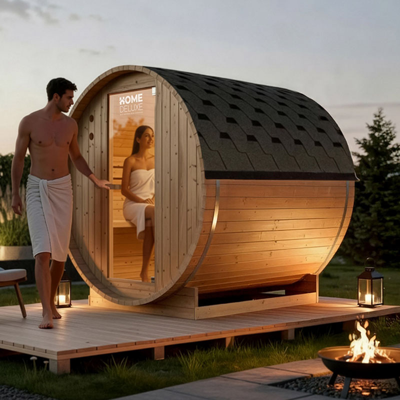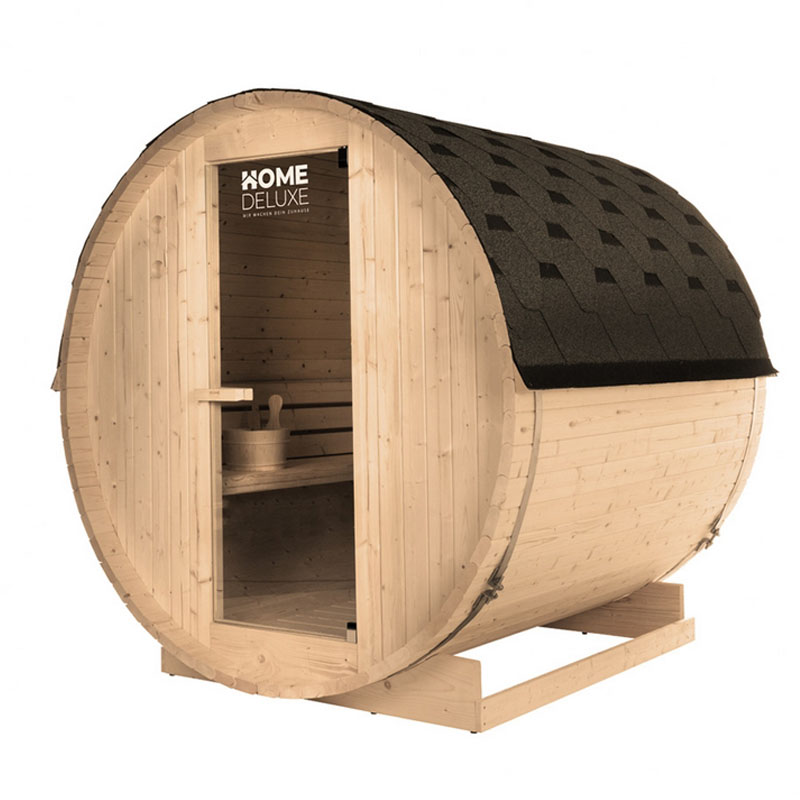 - Platzsparend und funktional: Die kompakte Bauweise macht die Sauna ideal für kleine Gärten und enge Zugänge.