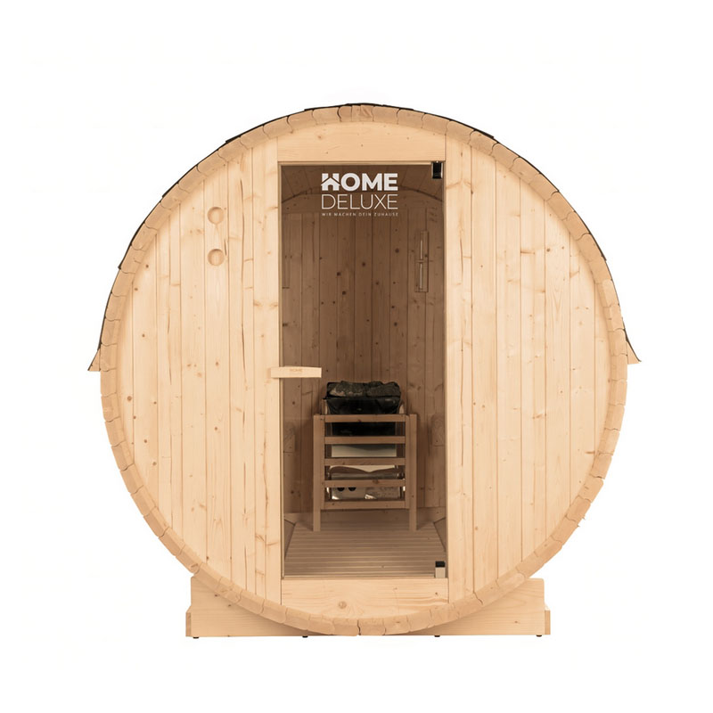Das Herzstück dieser traditionellen Outdoor-Fasssauna ist der leistungsstarke 6 kW Saunaofen. Dank der einzigartigen Fassform kann Wärme und Luft optimal zirkulieren, was zu einem gleichmäßigen Raumklima führt. So genießen Sie bei idealen Bedingungen angenehme Temperaturen zwischen 80 und 100 °C und können ausgiebige Aufgüsse durchführen.