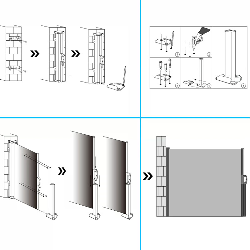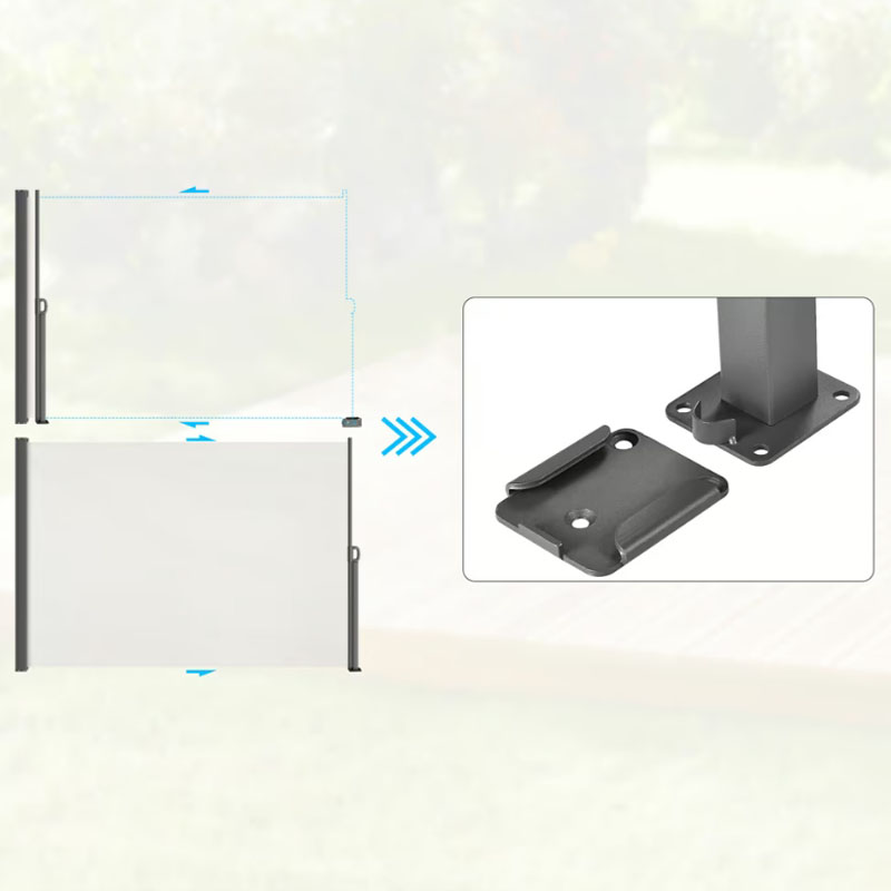 - Zwei Montage-Optionen: Befestigen Sie den Endpfosten entweder dauerhaft fest im Boden oder nutzen Sie den mitgelieferten Pfostenschuh. Letzterer ermöglicht es Ihnen, den Pfosten mit einem Handgriff zu entnehmen – ideal, wenn Sie die Markise im Winter platzsparend lagern möchten.