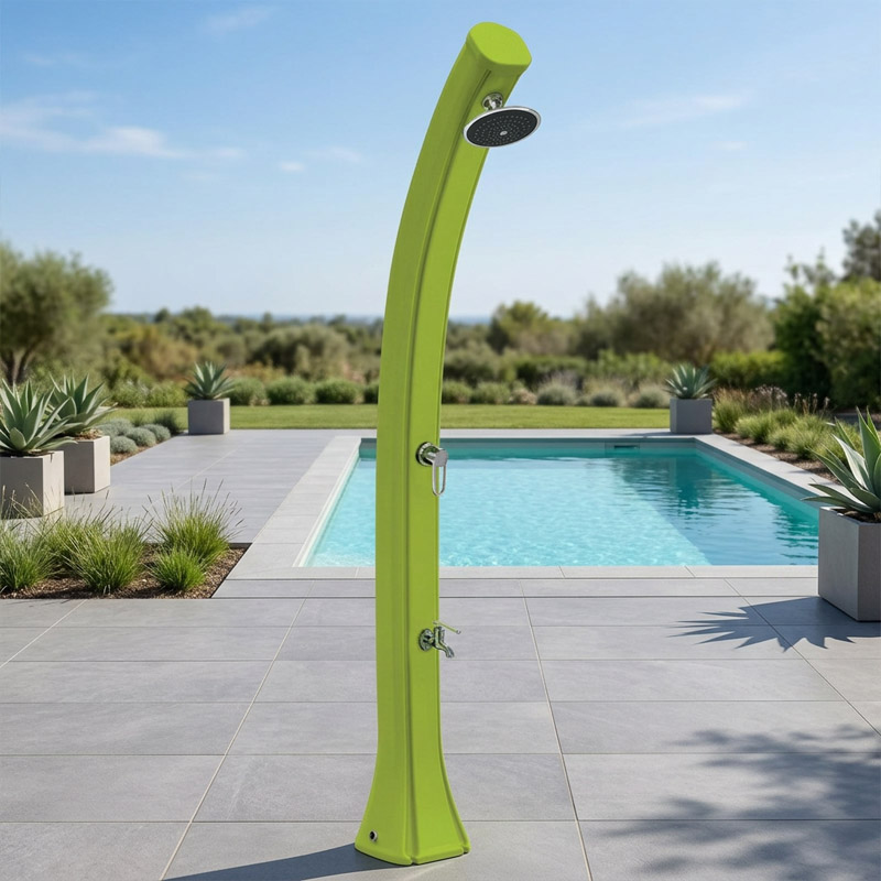 Hergestellt aus hochwertigem HD-Polyethylen, präsentiert sich diese Dusche Happy 4x4 in 4 attraktiven Farben: Blau, Anthrazit und Rosa, Grün. Ihr elegantes, geschwungenes Design fügt sich harmonisch in jede Gartenlandschaft ein und verleiht Ihrem Außenbereich einen modernen Touch.